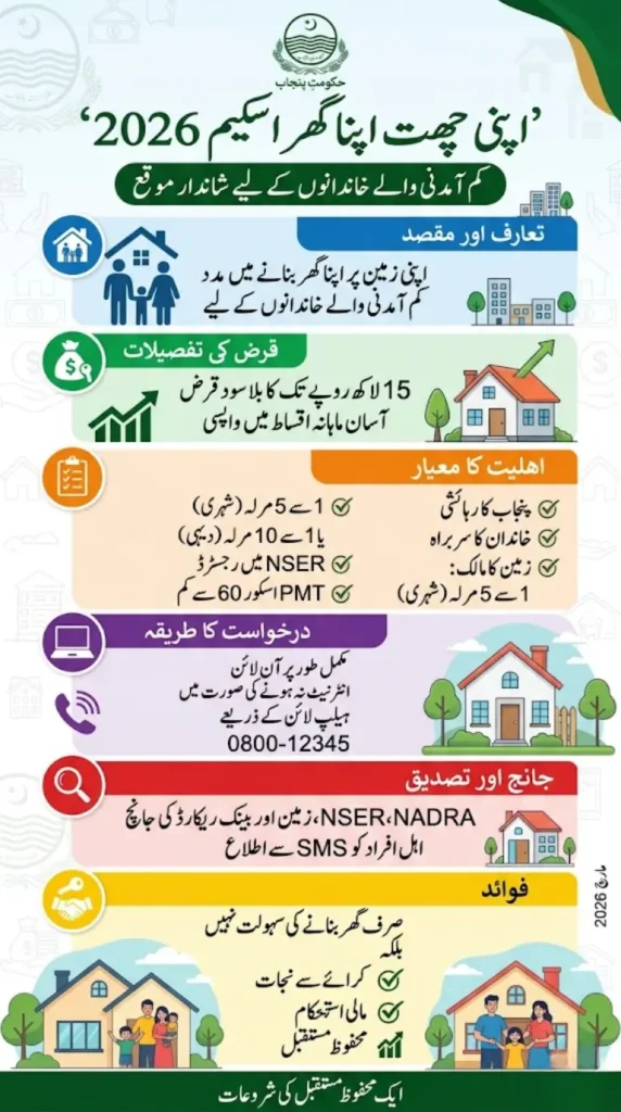 Owning a home is a dream for many families in Pakistan, but rising costs have made it difficult. The Apni Chhat Apna Ghar Scheme 2026 brings a practical solution by offering interest-free loans and a transparent process.