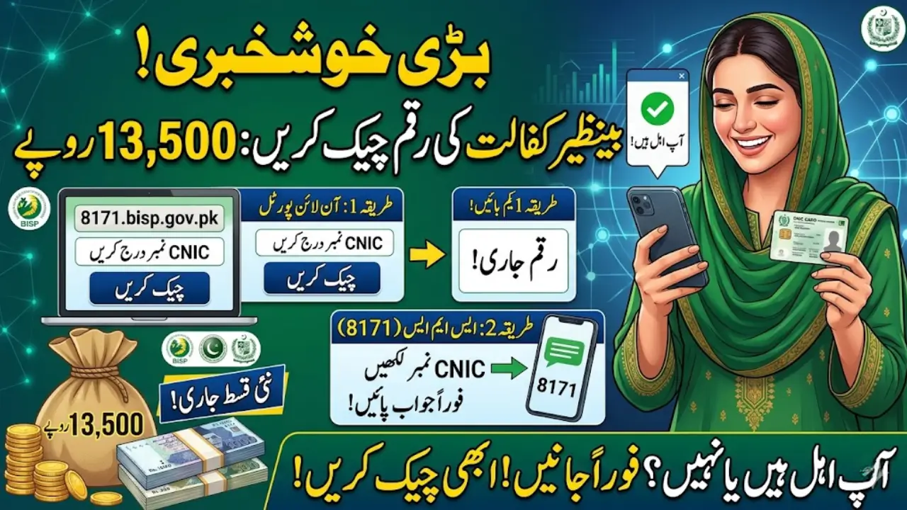 The Benazir Kafalat Check Online system allows eligible women to easily verify their eligibility and payment status using their CNIC. By visiting the 8171 web portal or sending their CNIC to 8171 via SMS, beneficiaries can instantly check if their Rs. 13,500 payment has been released. The program supports low-income and vulnerable women, especially those registered in the NSER survey.