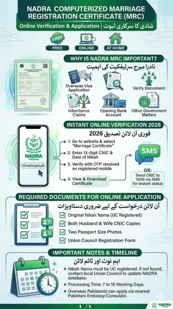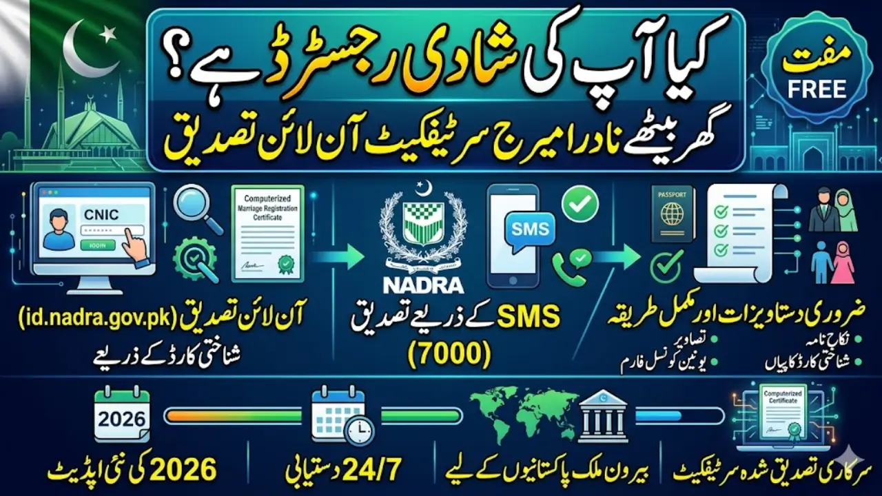 NADRA also offers a quick SMS-based check. Send your CNIC number to 7000 from a registered Pakistani mobile number. You will receive a reply confirming whether a marriage record exists in the NADRA database.